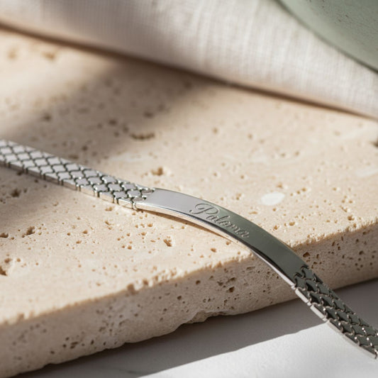 Personalized Engraveable ID Bracelet - Gold or Rhodium Plated, Handmade
