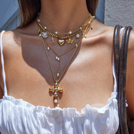 Collar Ocean Charms – Colgante de Corazón, Concha, Cerámica y Perla