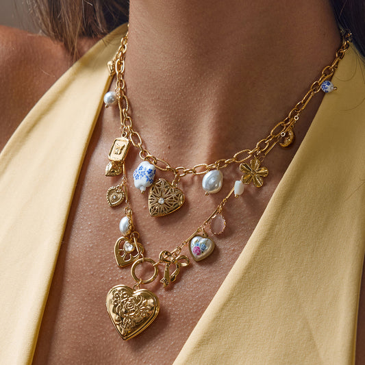 Collar Ocean Charm con Perlas, Corazón, Luna, Flor y Acentos de Cerámica