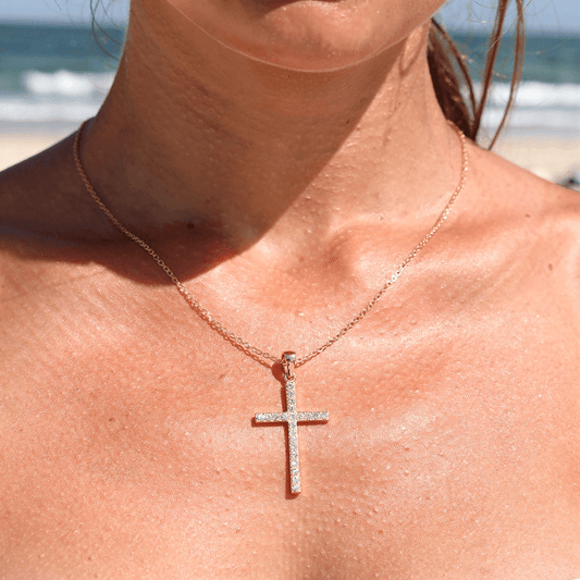Collar con Colgante de Cruz de Cristal Turquesa Rojo
