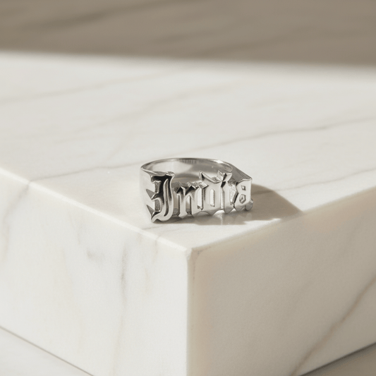 Custom Gothic Name Ring - Handmade Personalized Jewelry in Various Metals