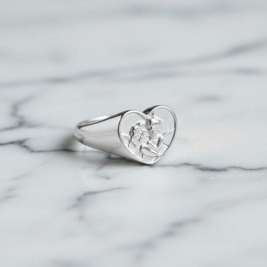 Elegant Angel Signet Ring - Gold Plated or Rhodium Plated Brass