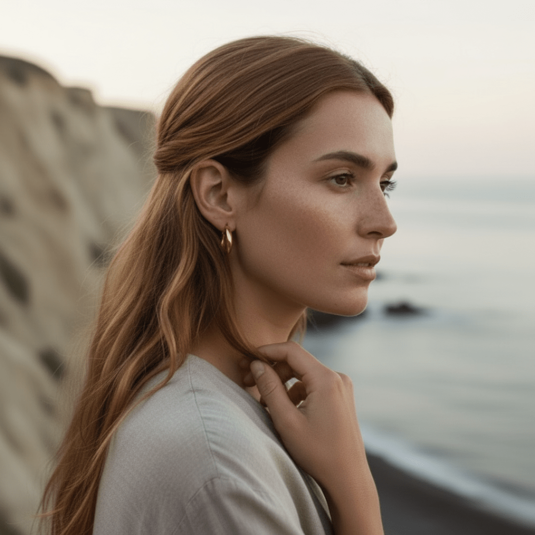 These Medium Hoops capture the timeless, polished beauty of a shell smoothed by the tide. They are a classic arc of light, designed to be an essential, graceful foundation for every look and every moment.