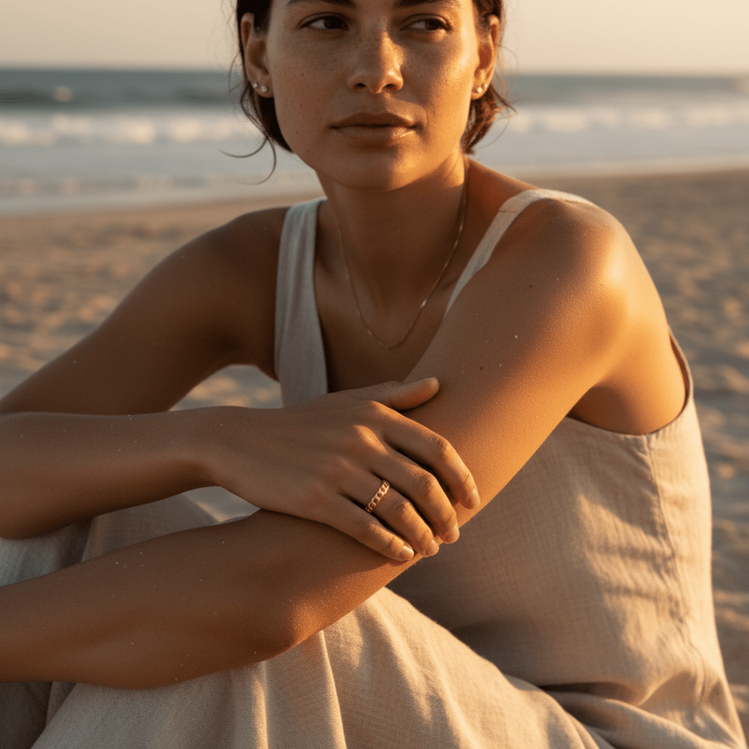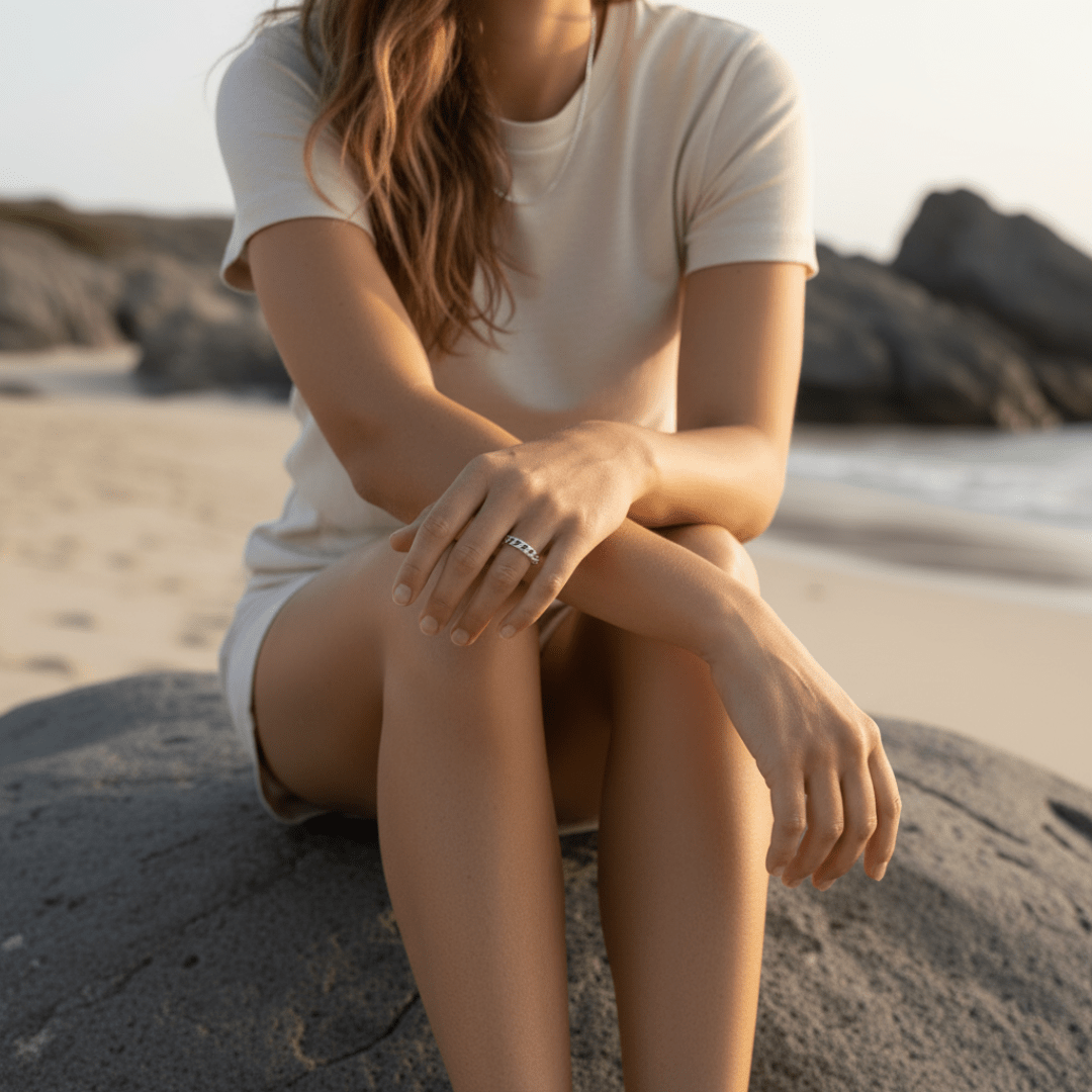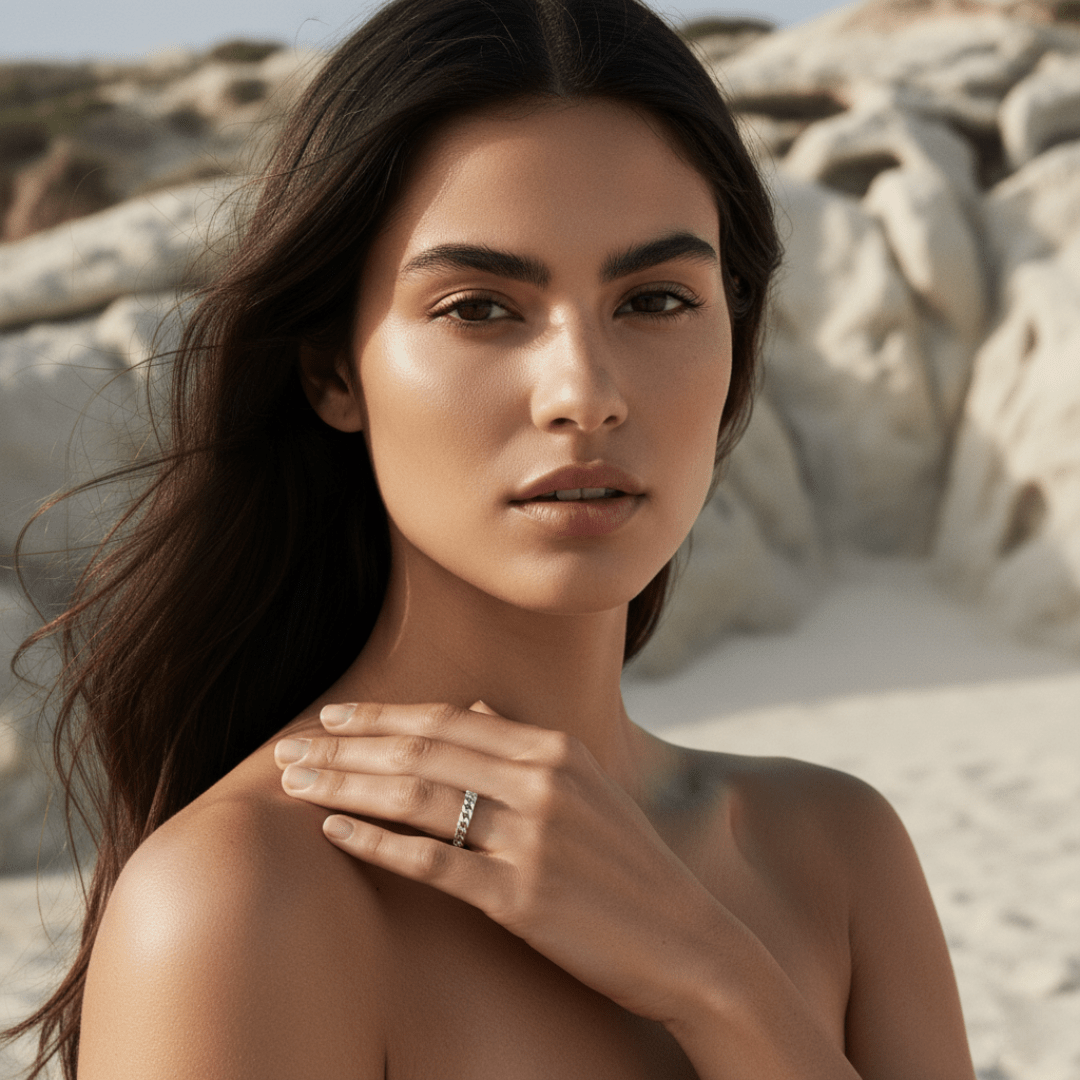 Designed for harmony and ease, it is perfect for comfortable everyday wear. Wear it alone for a clean statement or stacked with other pieces. The Coastal Anchor Chain Ring is an essential accessory, a quiet piece of structure that brings polished sophistication to your hand.