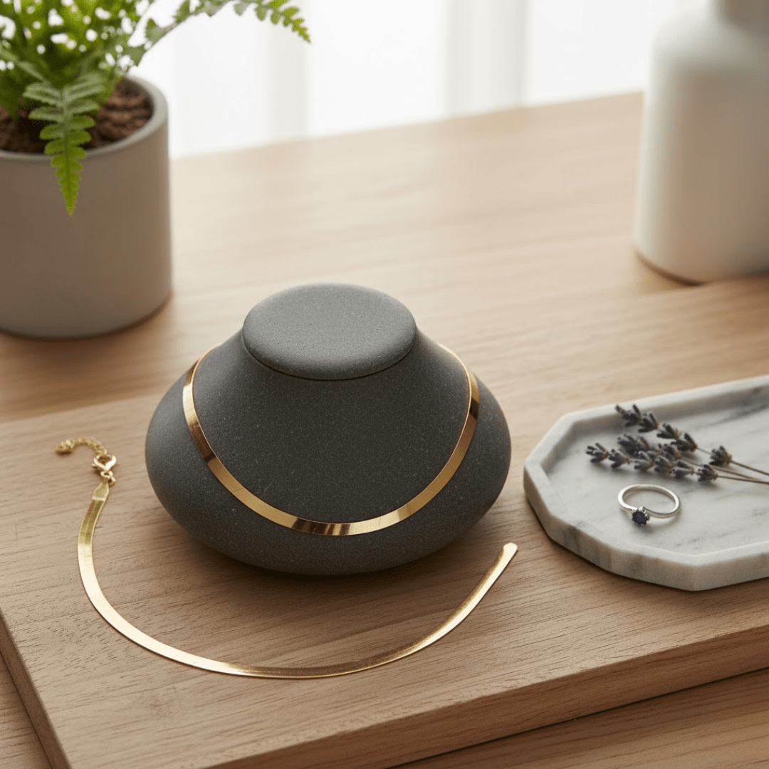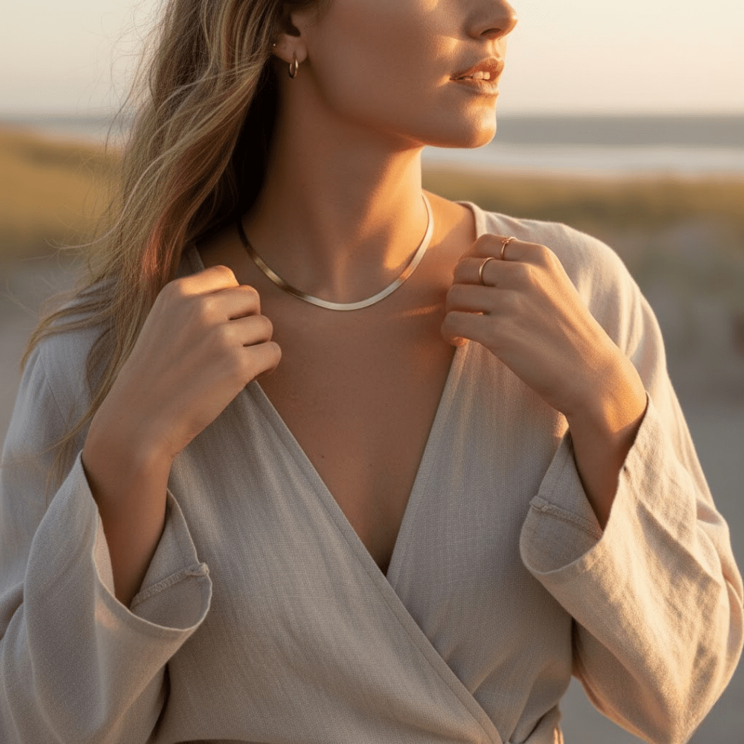 Elegant Gold Necklace - Adjustable Flat Chain Choker for Women