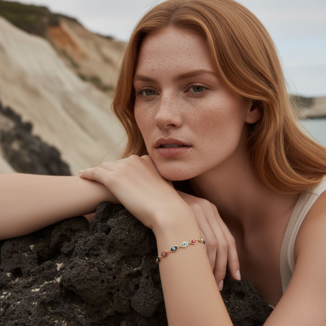 Elegant Multi-Color Evil Eye Bracelet - Gold-Filled