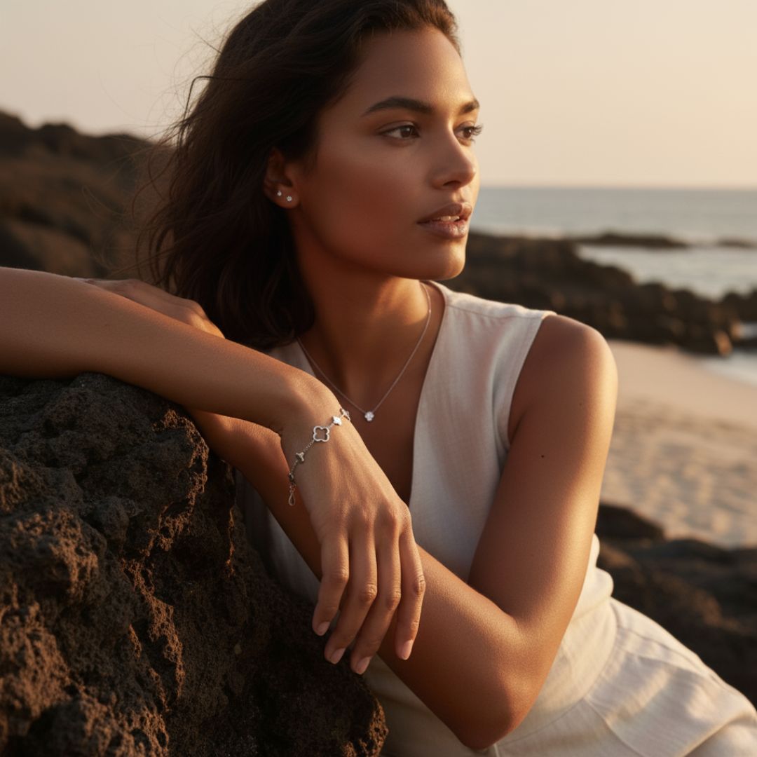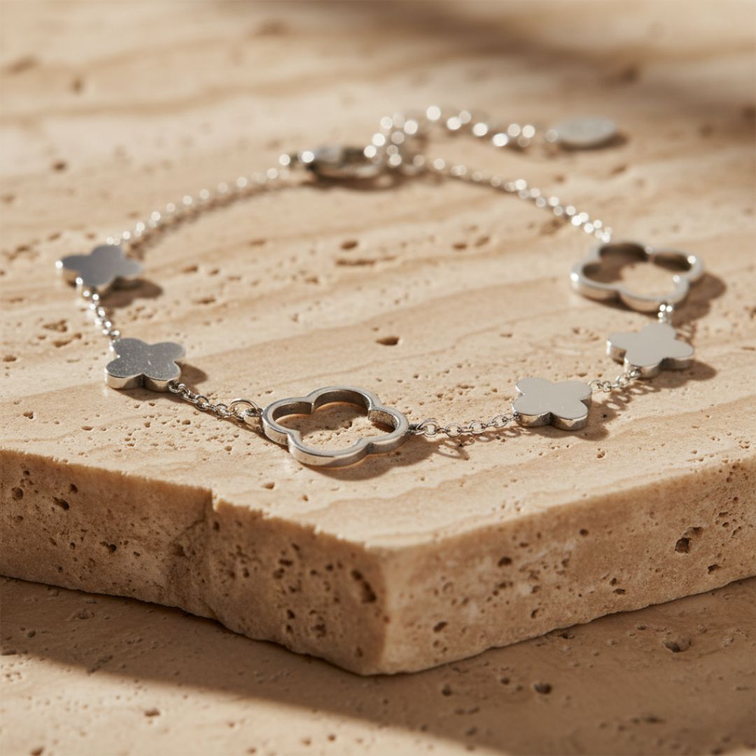• Stylish Charms: Features larger clover charms that add a touch of elegance.