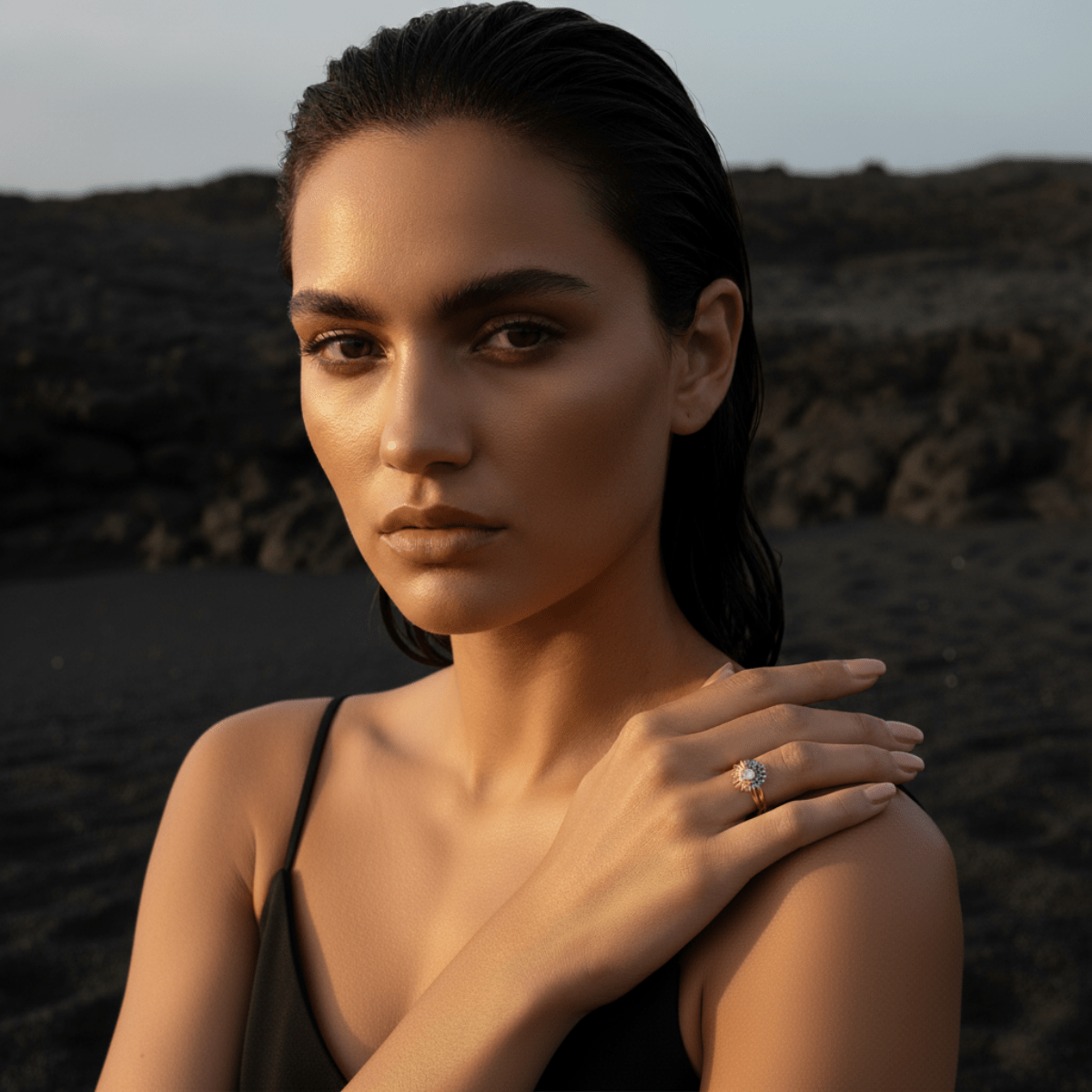 Sunrise Gold Sun Ring and Night...