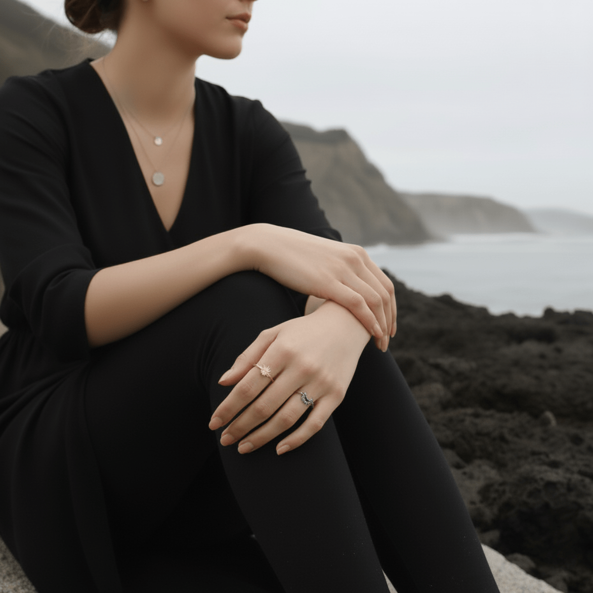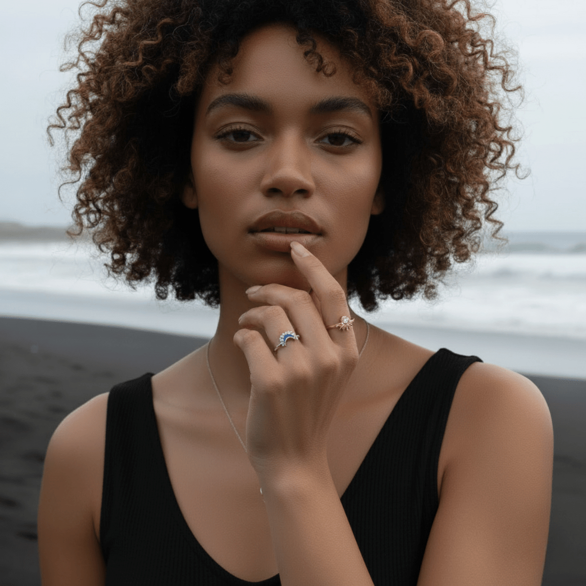 This exquisite Statement Ring captures the beautiful, eternal dance between the sun and the moon as they preside over the serene coast. It is a powerful yet elegant symbol of balance, light, and personal rhythm. The dual-tone design features the brilliant Sun, crafted in warm gold, silver and radiating with sparkling crystals. Opposite it, the serene Moon is rendered in clear Silver, accented with delicate crystals and a touch of deep blue to evoke the night ocean.