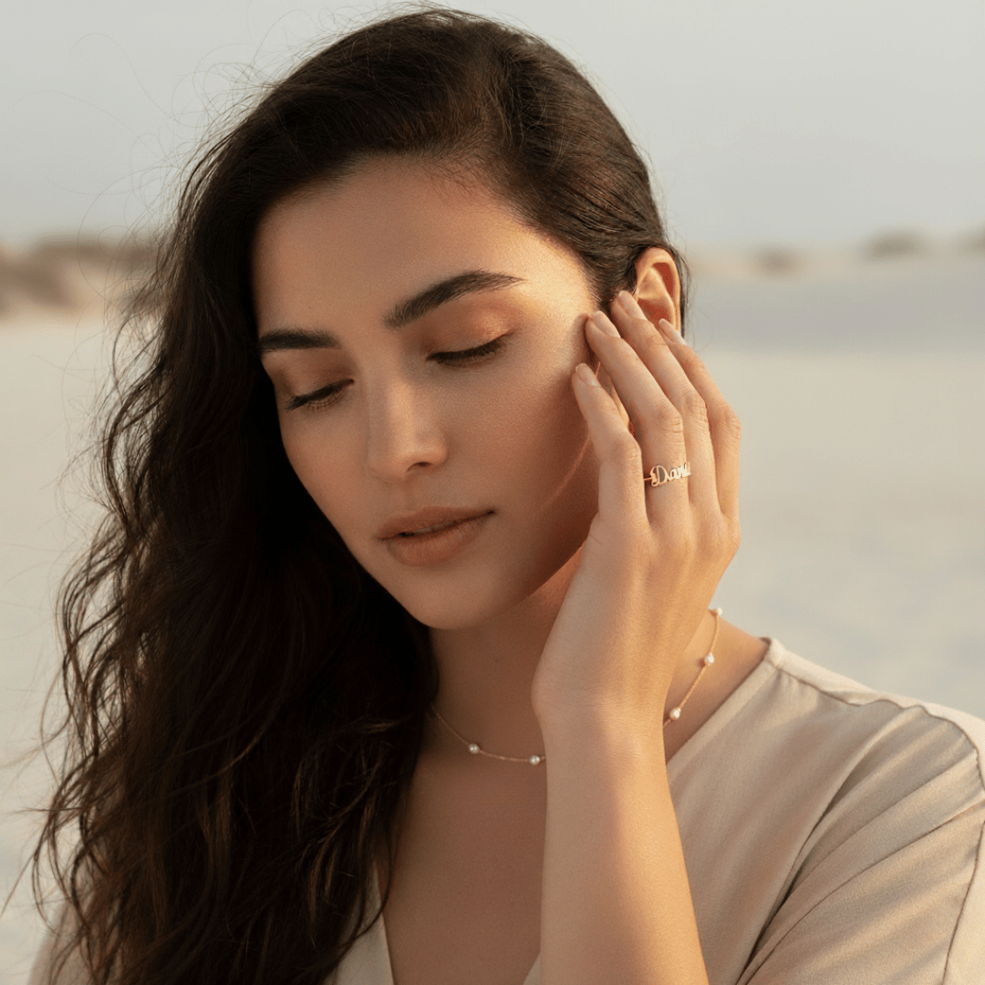 Discover the elegance of the Tiny Script Ring, designed for those who appreciate personalized jewelry. This ring allows you to express your individuality with customizable options, making it a perfect gift or a unique addition to your collection.